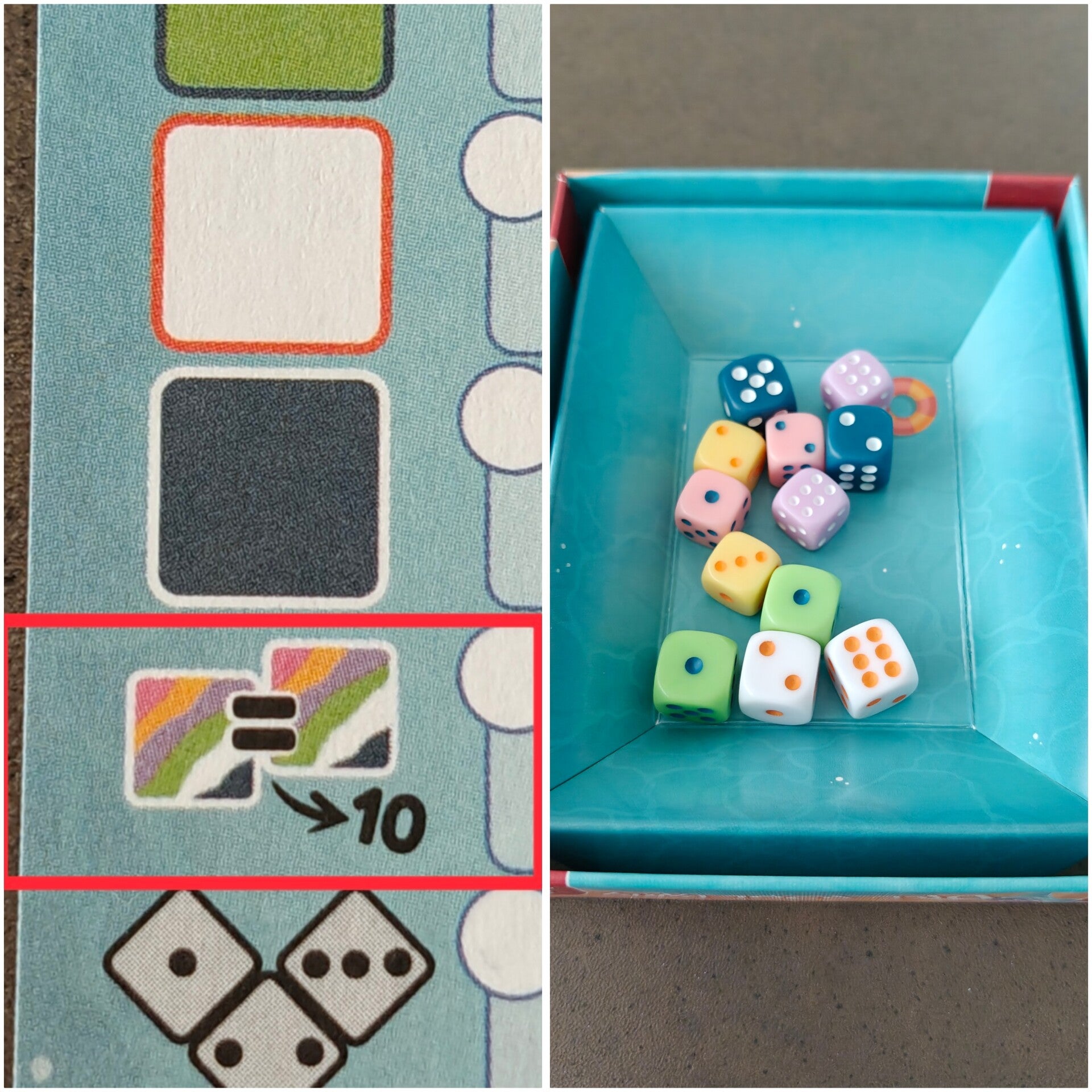 Wat we nog niet vermeld hebben is dat sommige dobbelstenen kleiner zijn dan anderen. Dat lijkt van geen tel, maar je zal al snel merken dat je hersenen daar anders over denken.