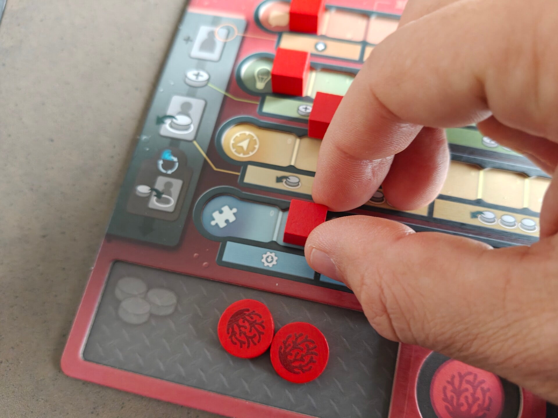 Het zorgen dat je genoeg schijven ter beschikking hebt voor elke ronde is cruciaal, net als de keuze van welk bemanningslid je de schijf terug neemt zodat deze actie weer vrij komt. Ervaring leert ons dat je niet elke ronde alle schijven kan terug nemen.