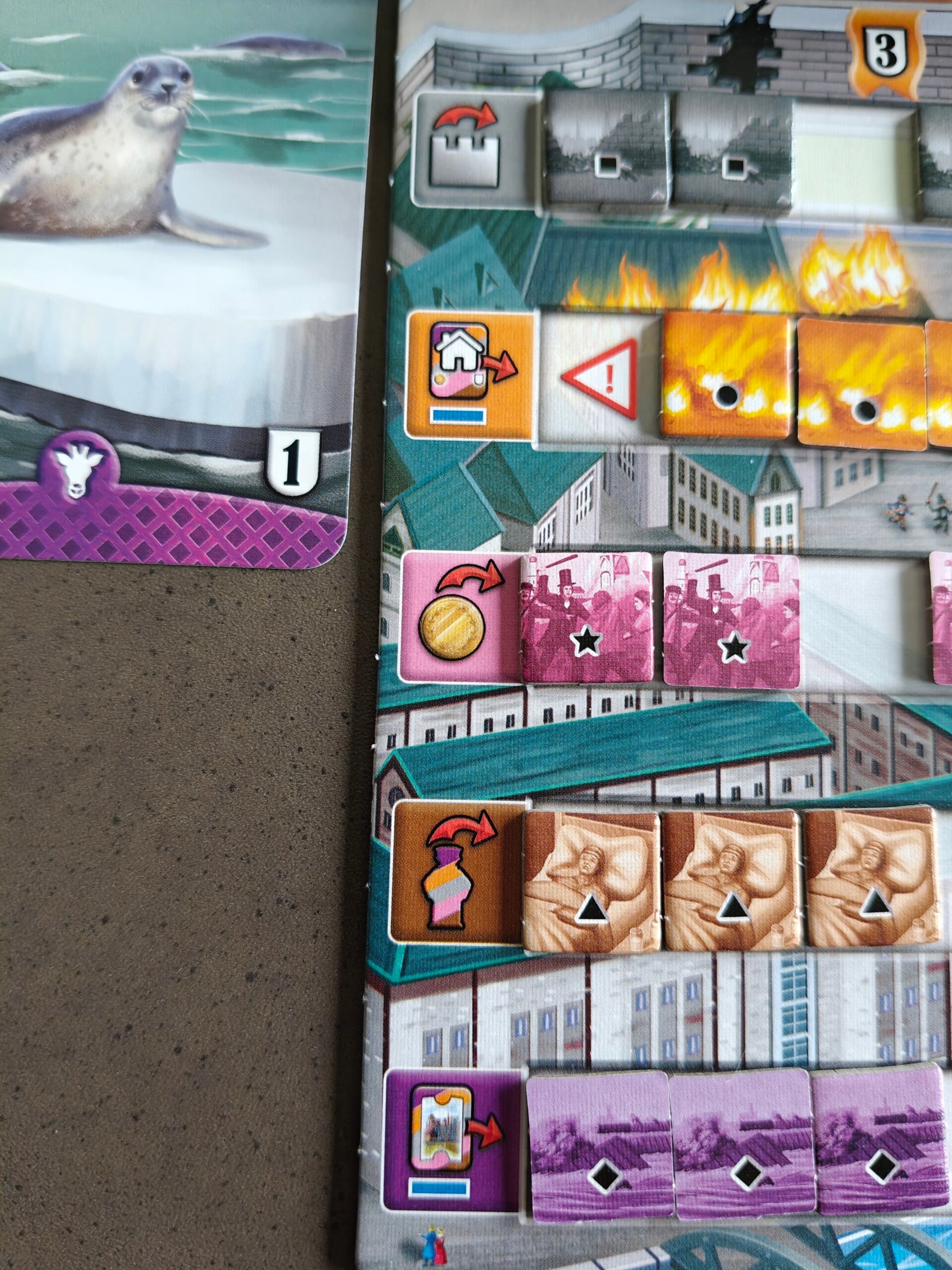 Van onheil in een spel zijn wij meestal geen fan. Destructieve acties vinden we in een opbouwend spel dikwijls vervelend en dat is hier niet anders. Je hebt wel wat invloed en je kan je onheiltellers zo laag mogelijk houden, maar dat gaat natuurlijk ten koste van andere acties.