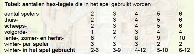 Ook voor de lente-, zomer- en herfsttegels staat het benodigde aantal in de bovenstaande tabel. In ons voorbeeld hier voor 4 spelers zijn er dat 8 per seizoen.