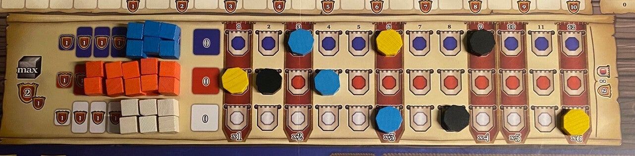 - 1 marker. Plaats deze op het gevechtsspoor op je spelersbord