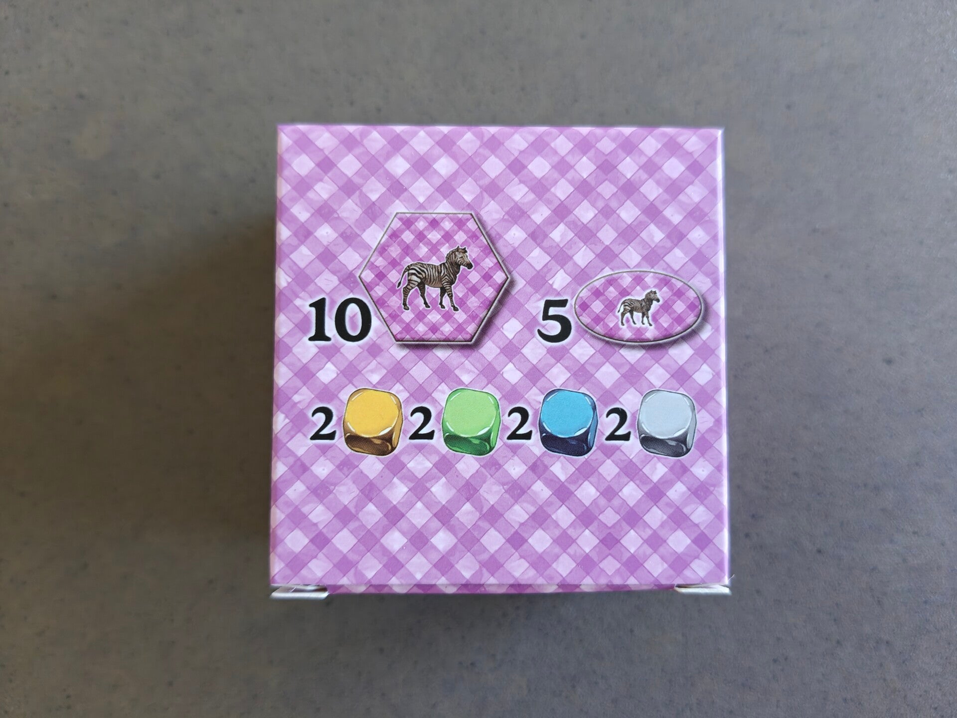 De 3 dierentegels in je aanbod en de 8 dobbelstenen vormen je persoonlijke vooraad!